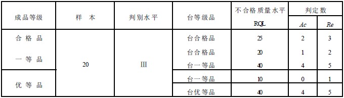 3. 3 扳手鉆夾頭產品的抽樣方案及等級評定見表1。